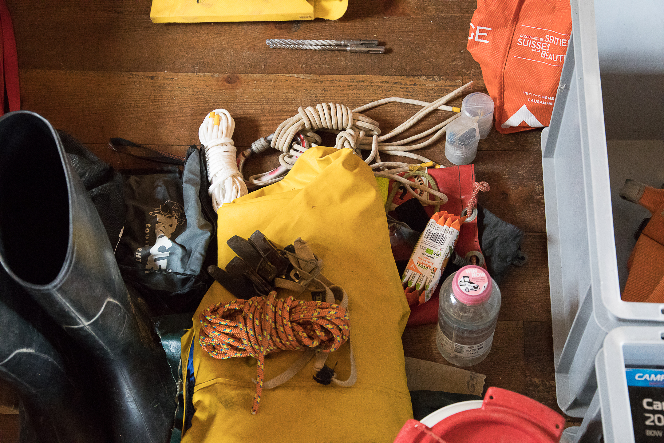 Deuxième frein (mais prévu): étant seul, je ne peux pas me permettre de désescalader les premiers 15 mètres, comme l’avaient fait mes prédécesseurs, mais dois équiper consciencieusement tous les ressauts. Ce qui prend évidemment beaucoup de temps. Résultat: je n’ai pas été plus loin que le haut du premier vrai puits. Il faudra revenir – si possible à plusieurs!