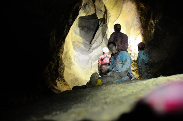 On en ressort avec le sourire ! Les trois initiations se sont bien passées avec comme introduction à la spéléo: un laminoir rempli d’eau, un beau puits presque vertigineux, des pauses photos frigorifiantes et de la boue, de la boue, de la boue…